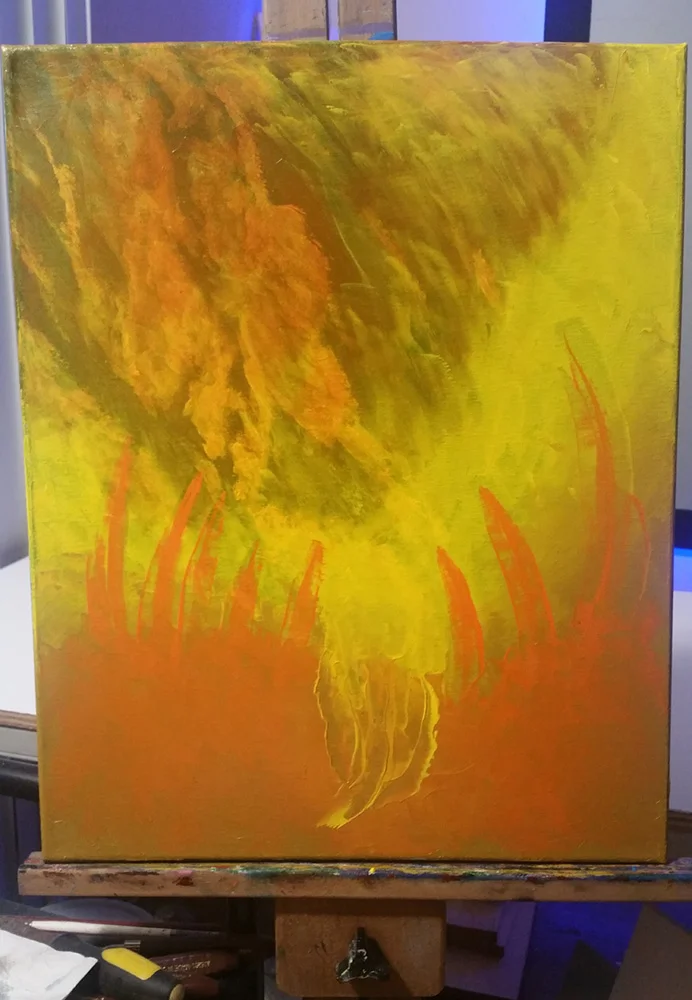 To get myself moving forward again, I took a couple of canvases that I'd started previously and abandoned, and just started putting down color to cover what was there previously, with the intention of using this color as background for a new painting. Both turned out well. They should make an interesting base for a new painting. That is, if I could figure out what to put on them,.lol.